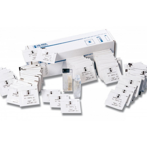 HI 3874 test kit comes with 100 packets nitrate reagent, glass cuvette and color comparison cube.