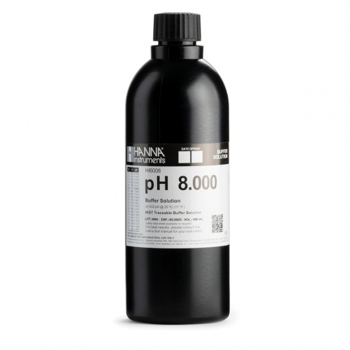 HI6008 is a premium quality pH 8.000 millesimal calibration buffer that is NIST traceable and supplied with a Certificate of Analysis. Millesimal buffer solutions are designed for customers who require a resolution of 0.001 for their pH measurements. Hanna calibration buffers have the lot number and expiration date clearly marked on the label and are air tight with a tamper-proof seal to ensure the quality of the solution. Hanna’s line of millesimal calibration buffers have been specially formulated to have an expiration of 5 years from the date of manufacture for an unopened bottle.