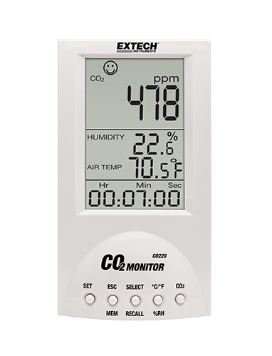 Extech CO220: เครื่องวัดคาร์บอนไดออกไซด์ ในอาคารชนิดตั้งโต๊ะ