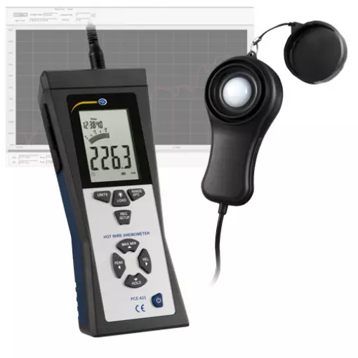 The PCE-174 Light Meter with memory for up to 16,000 readings is used for measuring light in industry, agriculture, and research. The Light Meter is also used for determining illumination in the workplace, shop window displays, and by designers. It meets with all international standards within the category for Light Meters. The Light Meter displays measurement results in lux and FootCandle. Please consider that 1 FC is equal to 10.70 lux. The device automatically detects the peak value, when this value is retained for a minimum 10 µs. Thanks to the possibility of selecting the measurement range, the PCE-174 Light Meter converts into a high precision instrument that is easy to use. The Light Meter can also be used by inexperienced personnel. Of course, when light is being measured, the ambient conditions must be taken into consideration. As such, the distance must be fixed and the angle between the Light Meter and the object being measured to obtain result of the highest repeatability.