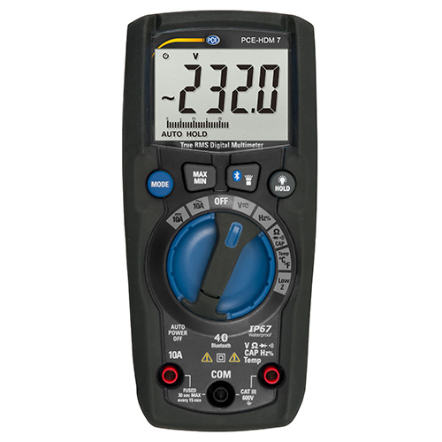 Digital multimeter for measuring current, voltage and resistance / Bluetooth interface / MAX function / Built-in flashlight / Temperature measurement with thermocouple type K
