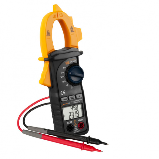 In addition to current measurement of up to 600 A AC, the digital multimeter can also measure voltages up to 600V AC / DC, resistors, capacitances and the voltage network frequencies. Another special feature of the digital multimeter is the “SMART” function. With this function the digital multimeter sets the measuring function itself. Thus, the digital multimeter is also used in schools, training centers or other educational institutions.