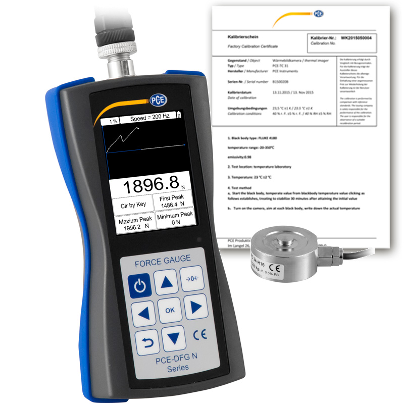 | Measuring range | 0 … 2 kN / 2,000 N / 204 kg / 450 lbs |
