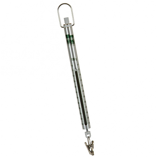 The 100 g Hanging Scale / Force Gauge is a vertical hanging suspension hook for traction force measurement. Ideal for use in classroom demonstrations, this corrosion-resistant anodized aluminum analog scale features a fatigue-resistant internal spring and requires no batteries.