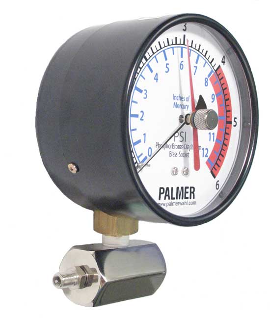 - Measures in 1/10th lb increments, 1/2″ Hg