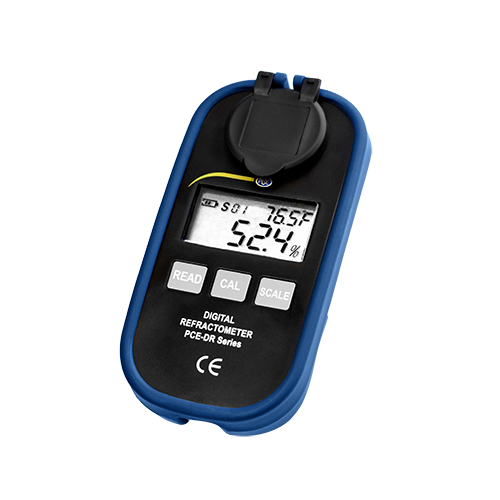PCE-DRB 2 is a handheld digital refractometer used to determine the refractive index and dextran, fructose, glucose, lactose and maltose content (%) of liquid. This IP65-rated digital refractometer features automatic temperature compensation (ATC) from +10 … +40 °C / +50 … +104 °F, as well as a large, easy-to-read LCD that shows both the measured value and the temperature.