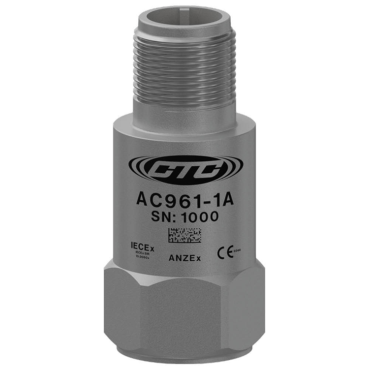 AC961 – IEC Certified (IECEx), Intrinsically Safe Accelerometer, Top Exit Connector / Cable, 10 mV/g Low Capacitance