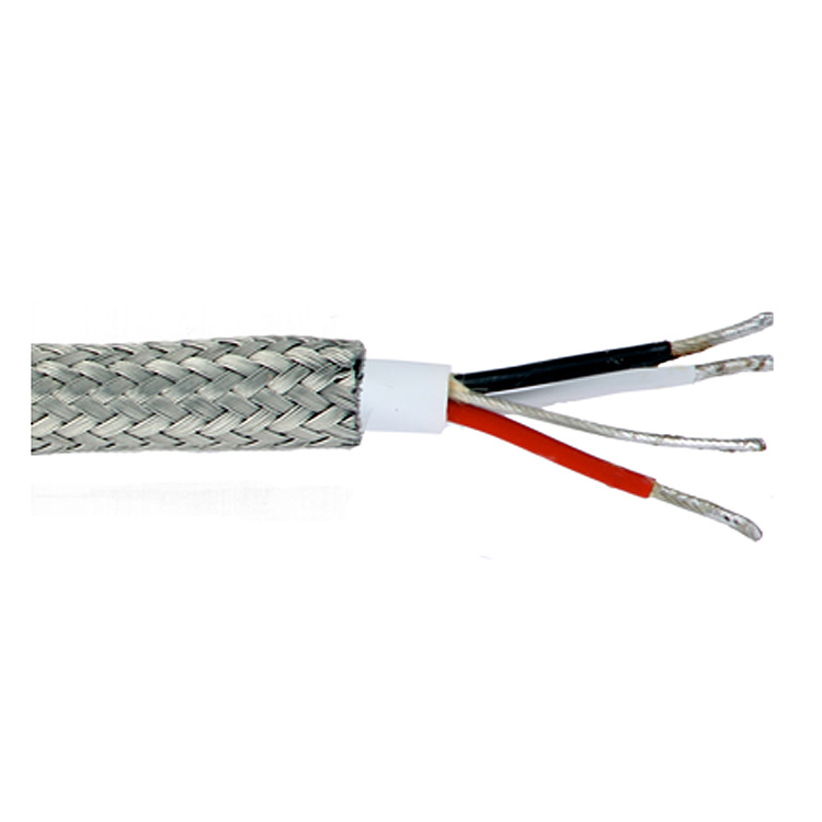 CB819 - 4 conductor twisted, shielded cable, orange Teflon jacket, .190" (4.8 mm), stainless steel braided sheathing, .250" (6.4 mm) OD, 400°F (204°C)