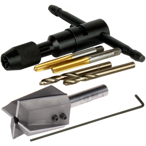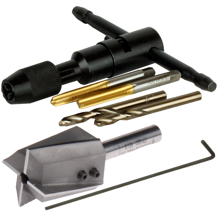 MH117-13B - Carbide tipped accelerometer installation tool kit, 1" diameter, with tap set for 1/4-28 thread