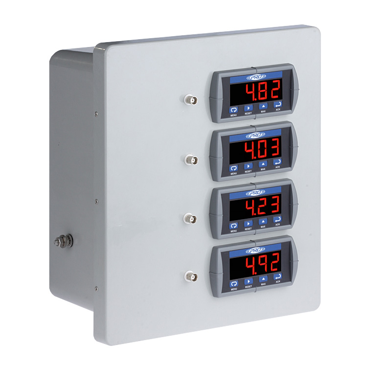 MVR1000 – 1-4 Channel Vibration, or 1-2 Channel Vibration / Temperature Monitoring System, with Options to include Switch Relay or Display Only, Signal Conditioner base, Fiberglass Enclosure