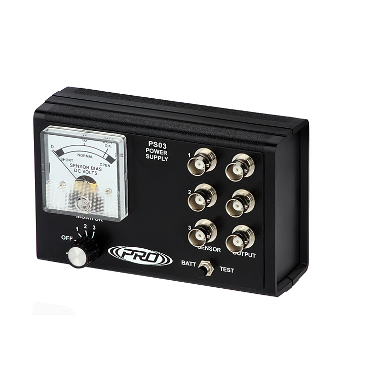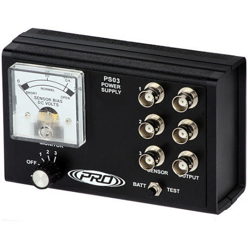 PS03 – Three channel battery power supply for accelerometers and piezo velocity transducers, BNC input/output