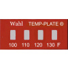 | Wahl’s versatile Four-Position Temp-Plates are the most popular configuration for general purpose maintenance. Careful selection of temperature points will allow detection and recording of most overheat occurrences. Temp-Plates are priced, sold, and shipped in reclosable storage boxes of 10 labels of the same part number. The unit of measure is box. Temp-Plate cover material is made of Mylar (clear) for ranges 90/350°F (32/176°C) and Kapton (amber) for 350/500°F (176/260°C). Diameter is .56″ (14mm). ” No Minimum Order is Required” |