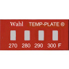 | Wahl’s versatile Four-Position Temp-Plates are the most popular configuration for general purpose maintenance. Careful selection of temperature points will allow detection and recording of most overheat occurrences. Temp-Plates are priced, sold, and shipped in reclosable storage boxes of 10 labels of the same part number. The unit of measure is box. Temp-Plate cover material is made of Mylar (clear) for ranges 90/350°F (32/176°C) and Kapton (amber) for 350/500°F (176/260°C). Dimensions are .38″ x .82″ (10 x 21 mm). ” No Minimum Order is Required” |