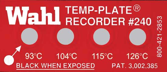 Wahl’s versatile Four-Position Temp-Plates are the most popular configuration for general purpose maintenance. Careful selection of temperature points will allow detection and recording of most overheat occurrences. Temp-Plates are priced, sold, and shipped in reclosable storage boxes of 10 labels of the same part number. The unit of measure is box. Temp-Plate cover material is made of Mylar (clear) for ranges 90/350°F (32/176°C) and Kapton (amber) for 350/500°F (176/260°C). Dimensions are .75″ x 1.75″ (19 x 44 mm). ” No Minimum Order is Required” |