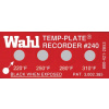 | Wahl’s versatile Four-Position Temp-Plates are the most popular configuration for general purpose maintenance. Careful selection of temperature points will allow detection and recording of most overheat occurrences. Temp-Plates are priced, sold, and shipped in recloseable storage boxes of 10 labels of the same part number. The unit of measure is box. Temp-Plate cover material is made of Mylar (clear) for ranges 90/350°F (32/176°C) and Kapton (amber) for 350/500°F (176/260°C). All labels 120F/48C and below are considered low temperature and are shipped with an ice pack to prevent the labels from turning in transit. They are shipped by Fed Ex Express Overnight. These labels should be refrigerated upon receipt or they could turn before their intended use. ” No Minimum Order is Required” |