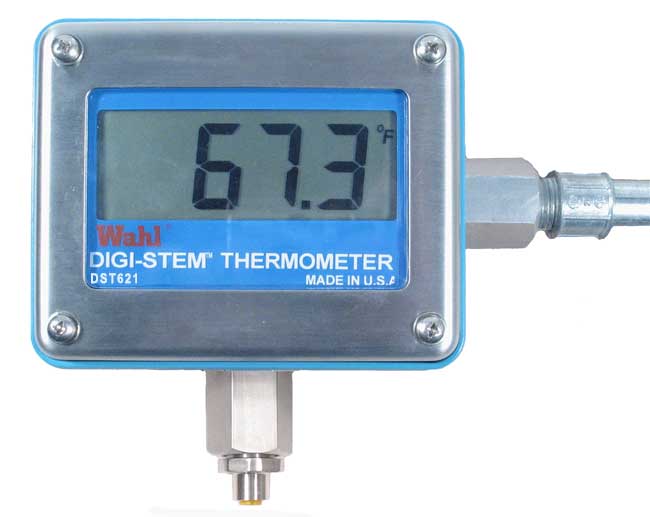 The Wahl DST621 offers the highest precision temperature measurement technology with many unique features – making it the best choice for your processing needs. It has a field replaceable battery with a 2 year life, and provides a trustworthy alternative to MIG style thermometers with drop-in direct replacement. It is available with MIG standard tapered bulb chambers, or in a variety of probe configurations. The Wahl DST621 also features a 1″ high LCD display – readable from 30 feet away!