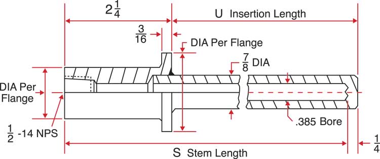 For pricing and available Stem Lengths and Insertion Lengths Contact Customer Service at 1-800-421-2853 or click ” Request A Quote” on the right.
